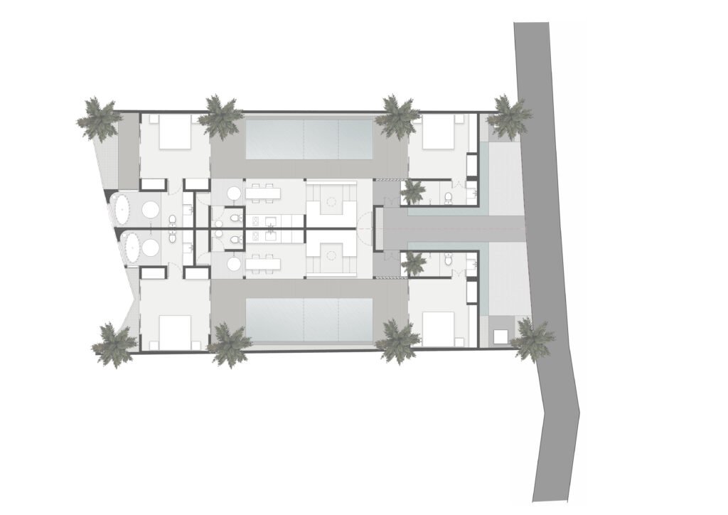 Nestled within Ubud’s lush tropical landscape, the site provides a strong natural character that inspired the architectural concept.